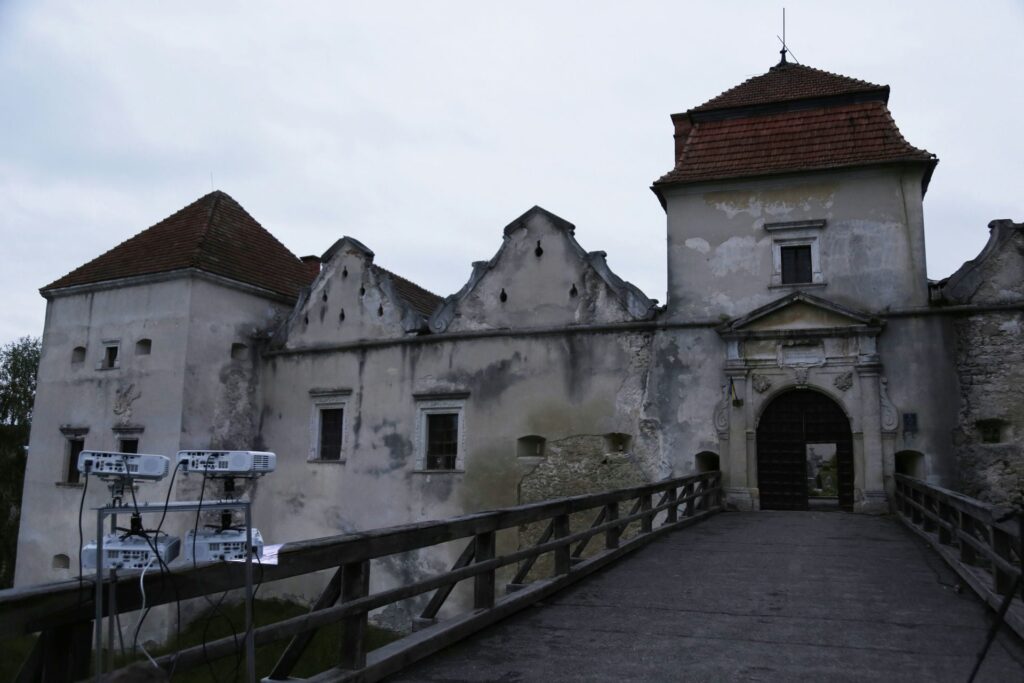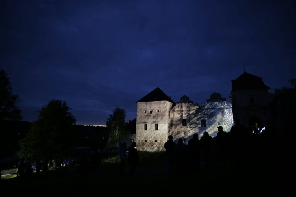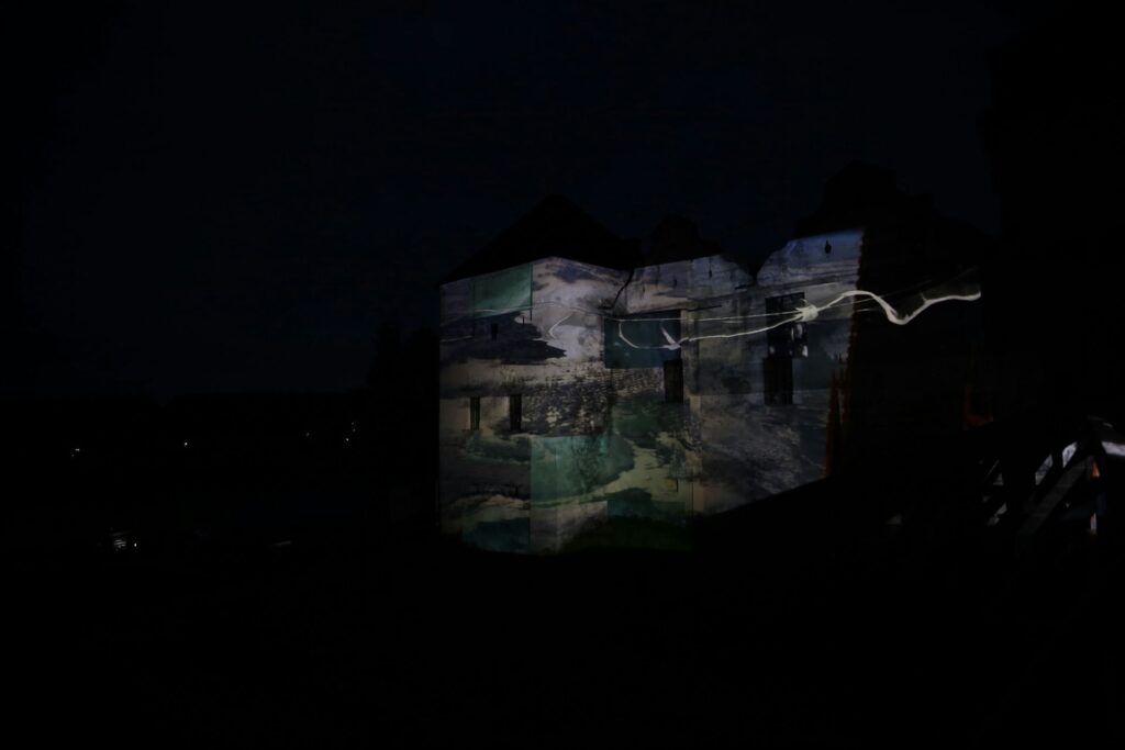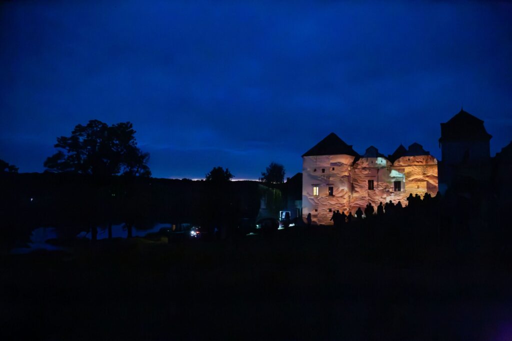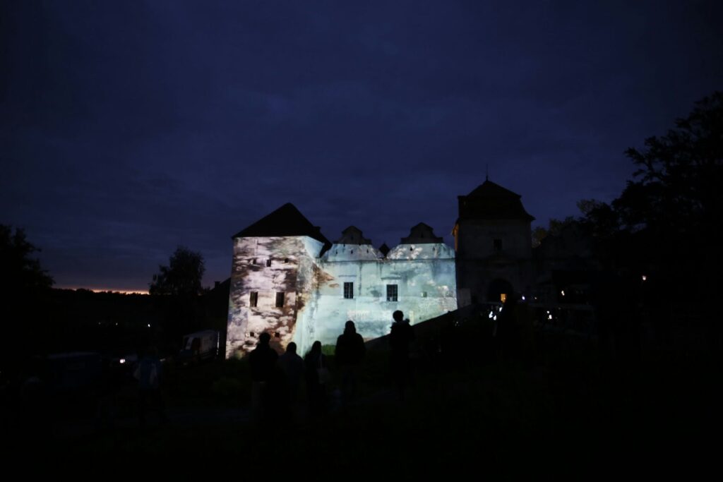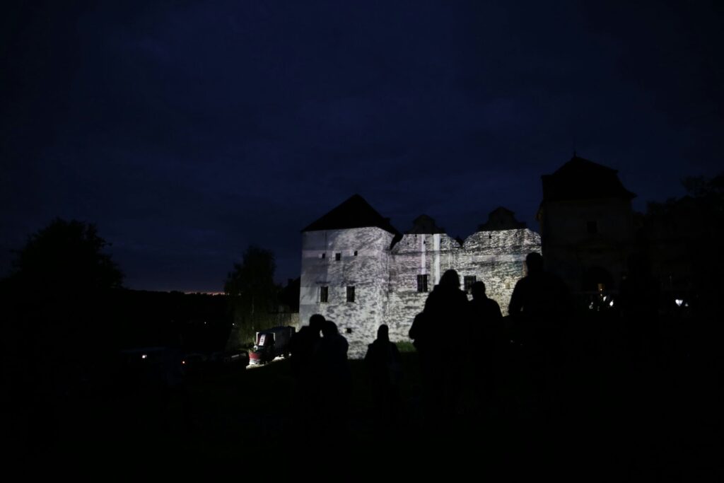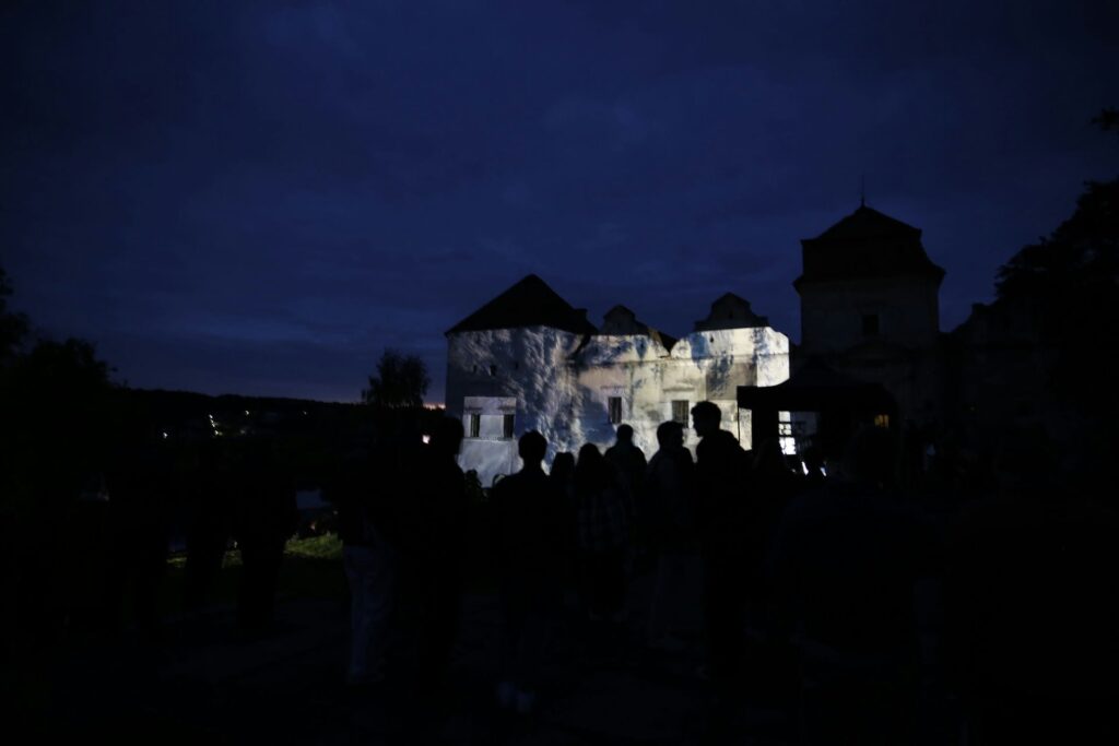 „Zamek Świrz zamienił się w żywe płótno dzięki mappingowi. Artysta — znany z multimedialnych instalacji i performansów łączących sztukę, technologię i narrację społeczną — stworzył hipnotyzującą projekcję „The Elements / FREE UKRAINA / FREE IMPROVISATION”, która zamknęła trzeci dzień wydarzenia.