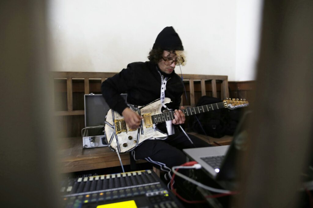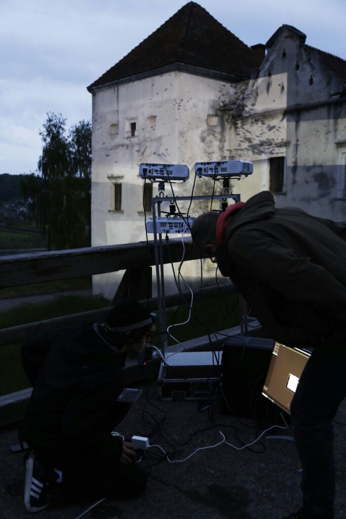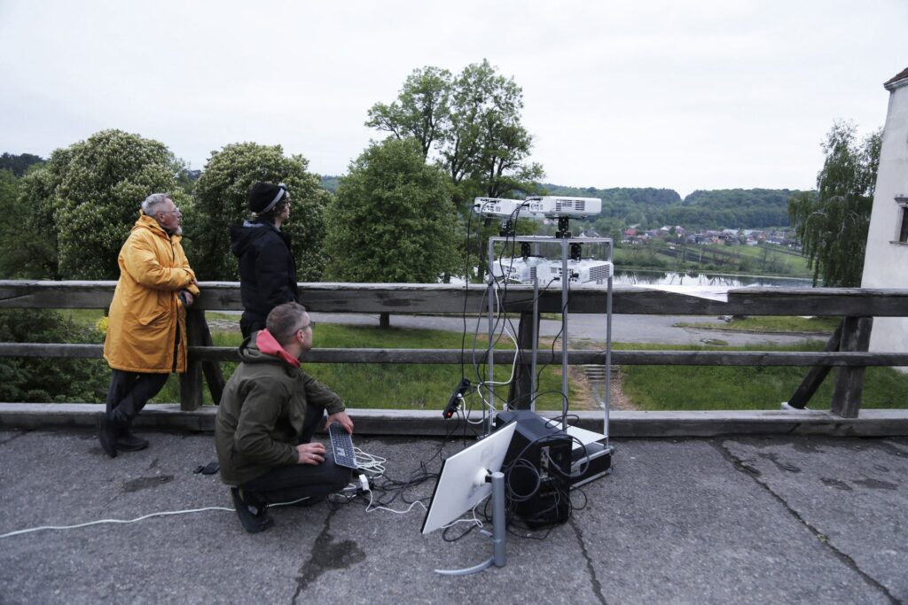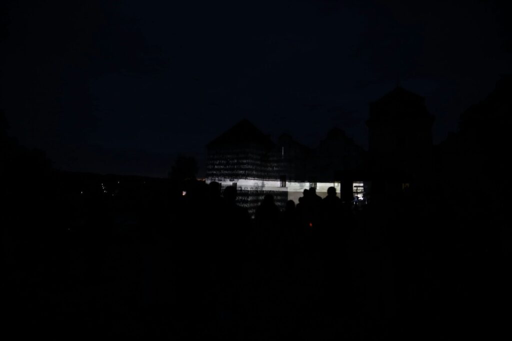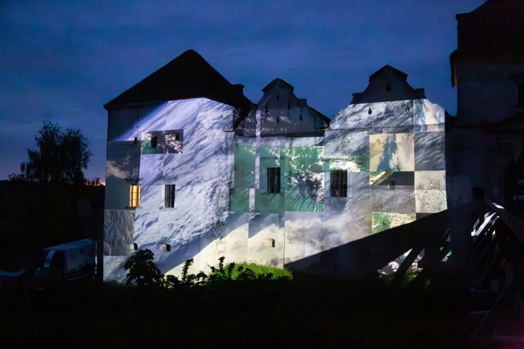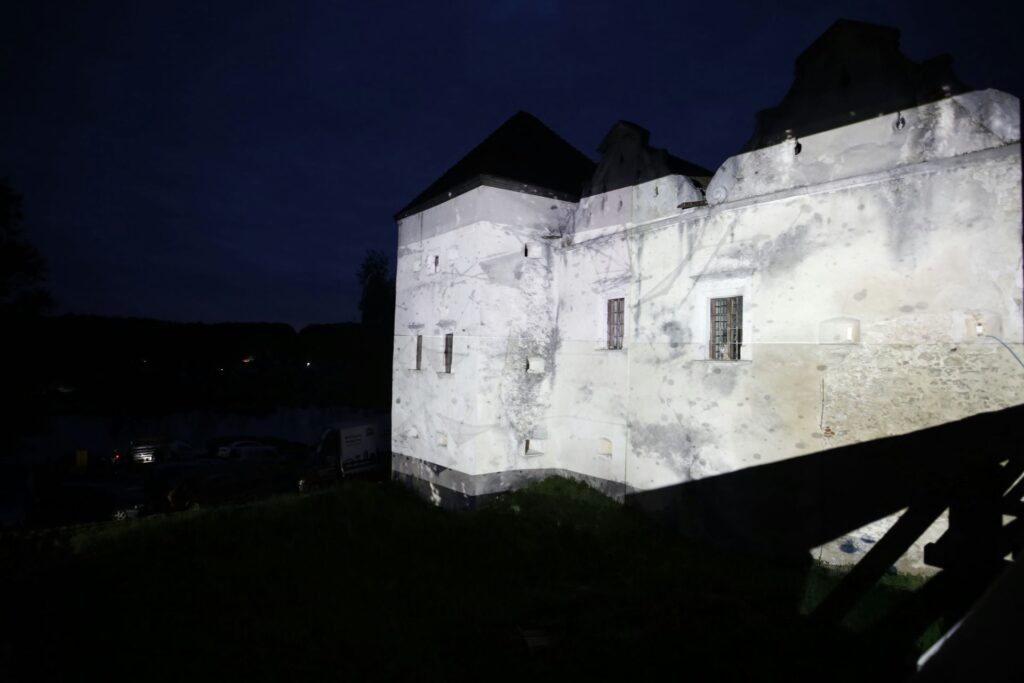 „Zamek Świrz zamienił się w żywe płótno dzięki mappingowi. Artysta — znany z multimedialnych instalacji i performansów łączących sztukę, technologię i narrację społeczną — stworzył hipnotyzującą projekcję „The Elements / FREE UKRAINA / FREE IMPROVISATION”, która zamknęła trzeci dzień wydarzenia.