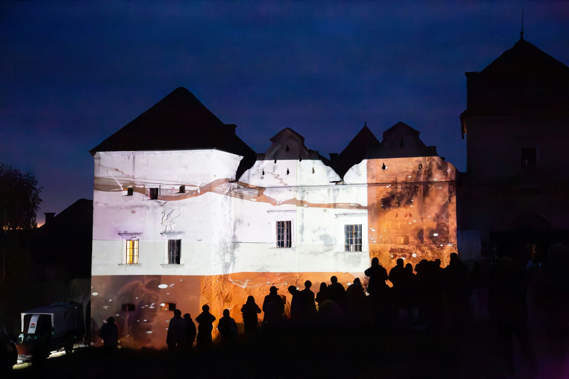 „Wieczorem 25 maja fasada zamku Świrz po raz pierwszy w swojej historii stała się płótnem pokazu mappingu multimedialnego do muzyki wybitnych polskich muzyków The Elements. Polski artysta intermedialny Alek Janicki stworzył kompozycję wizualną, wykorzystując światło, dźwięk i projekcje.