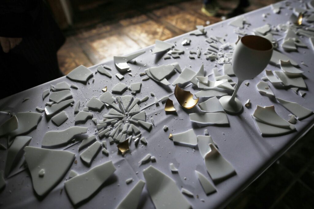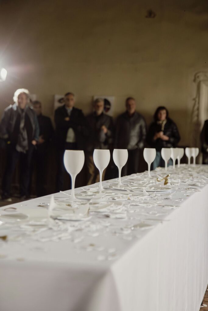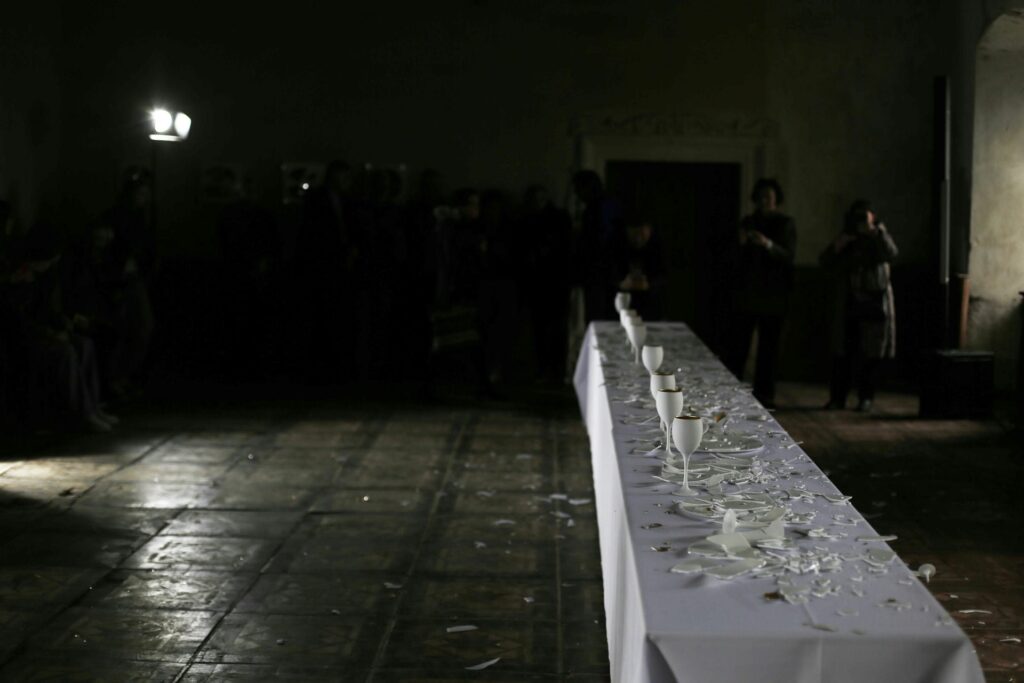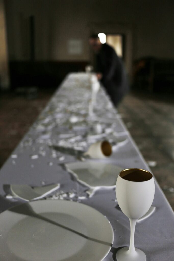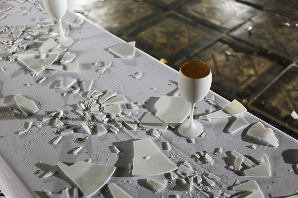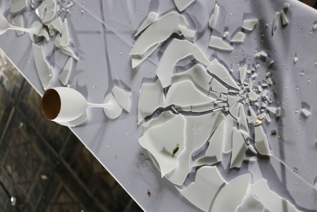Instalacja składa się z siedmiu aktów performansu: od kompozycji i destrukcji, przez agresję i dekonstrukcję, aż po rekonstrukcję — inspirowaną filozofią Kintsugi, sztuką naprawy i tworzenia czegoś nowego z pęknięć i zniszczeń.