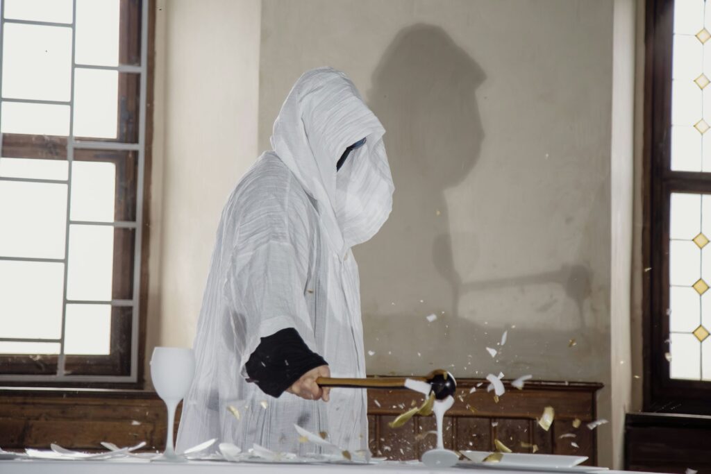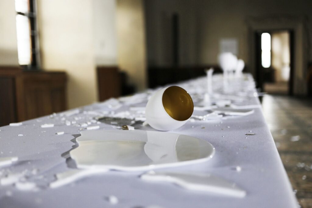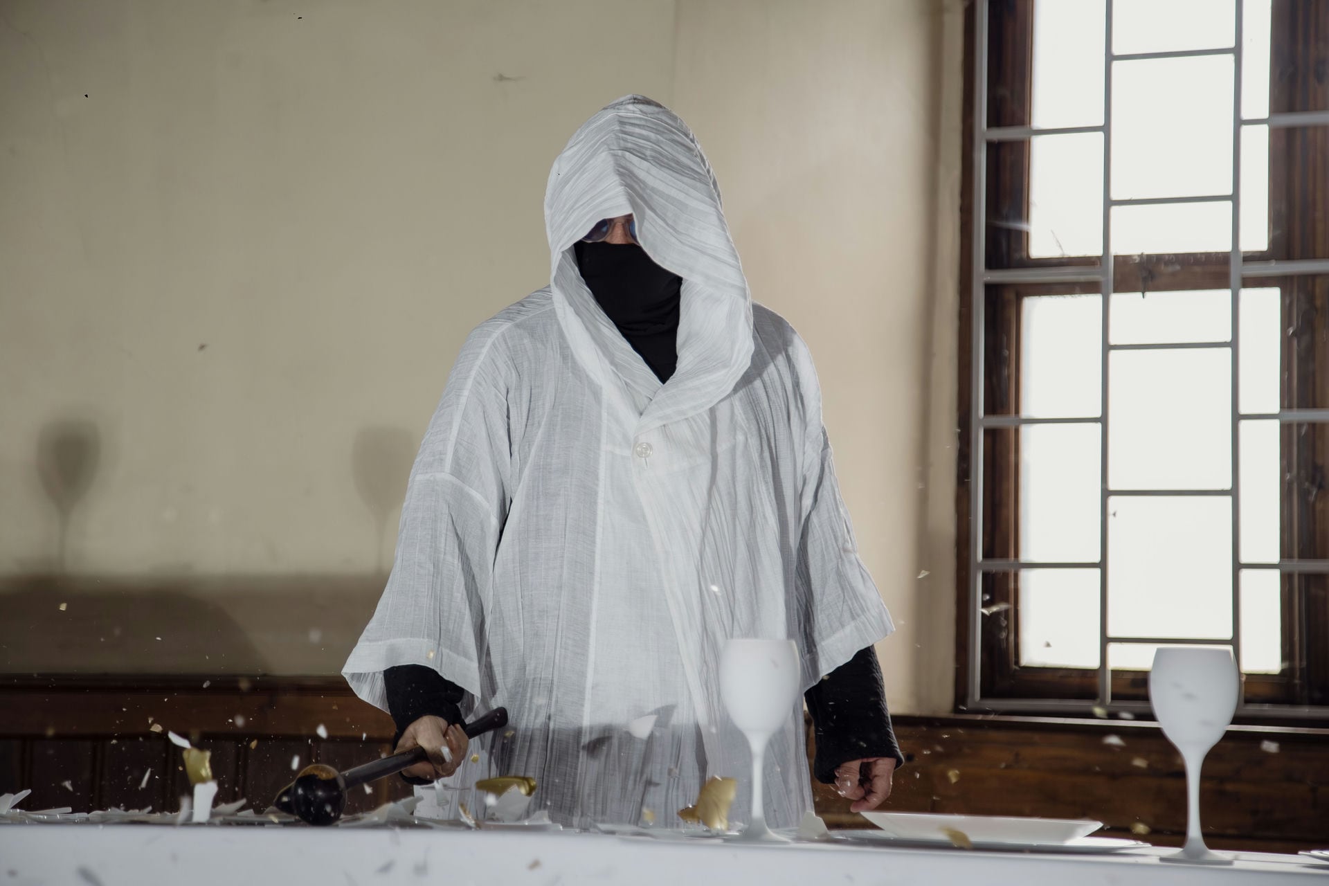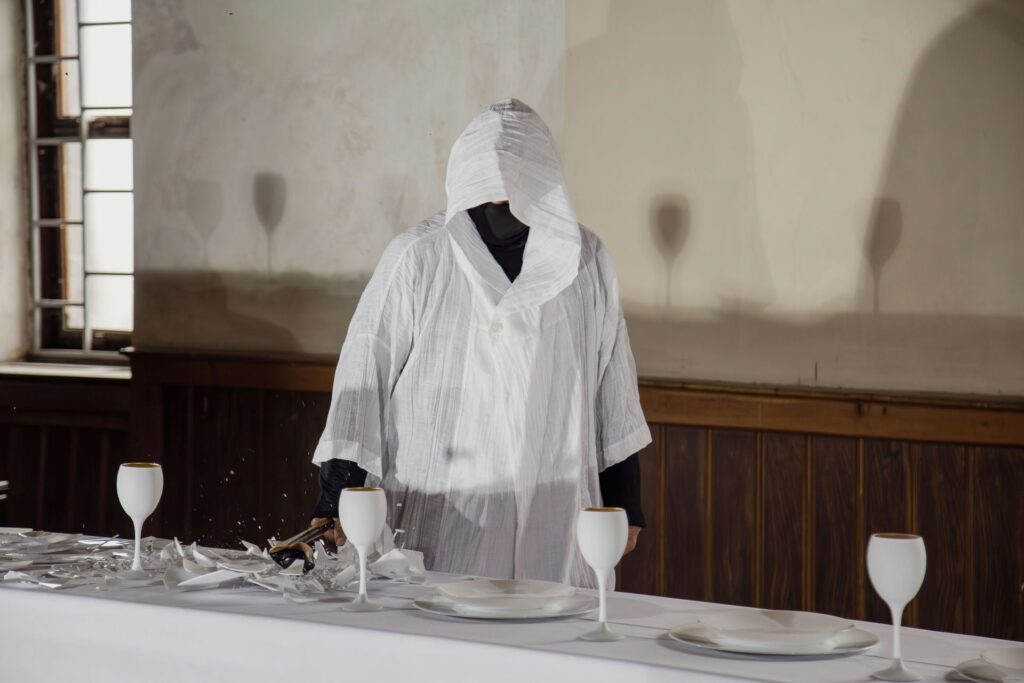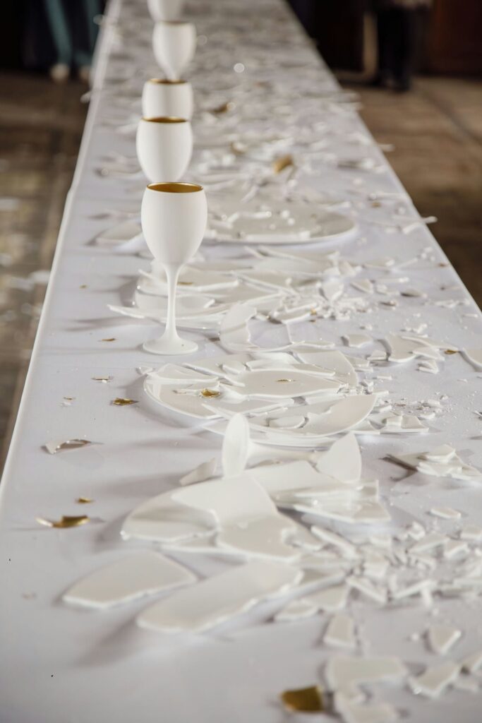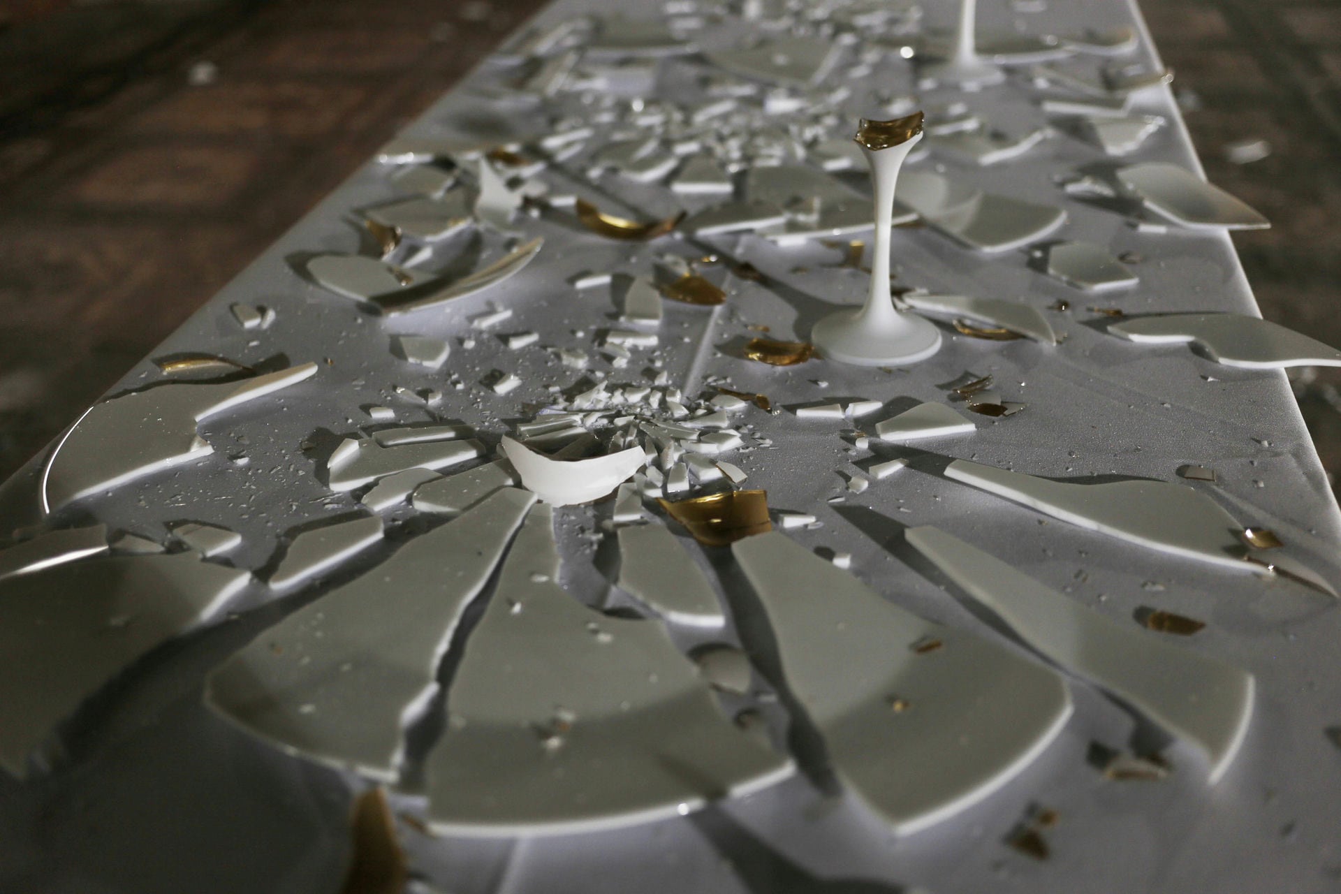 Instalacja składa się z siedmiu aktów performansu: od kompozycji i destrukcji, przez agresję i dekonstrukcję, aż po rekonstrukcję — inspirowaną filozofią Kintsugi, sztuką naprawy i tworzenia czegoś nowego z pęknięć i zniszczeń.