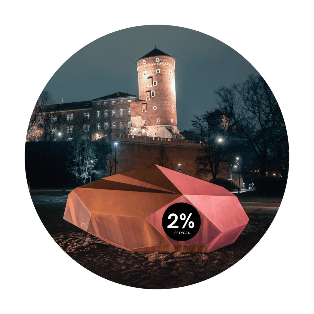 Metodyczne i świadome implementowanie dzieł sztuki w tkankę miasta ma wielowiekową tradycję. Najwyższy czas do niej nawiązać w sposób adekwatny do naszych czasów: świadomy, konsekwentny, odpowiedzialny i transparentny. Drugi procent z inwestycji ma być przeznaczony na elementy zielonego ekosystemu wokół danej inwestycji, z której środki pochodzą. To np. parki kieszonkowe, zielone ściany, dachy czy innowacyjne rozwiązania z dziedziny retencji. Zmiany klimatyczne wymagają mądrej polityki skutkującej strategią kreowania przestrzeni miejskiej w sposób gwarantujący dobrostan obywateli wsparty procesem partycypacyjnym i oparty na zrównoważonym rozwoju Krakowa.